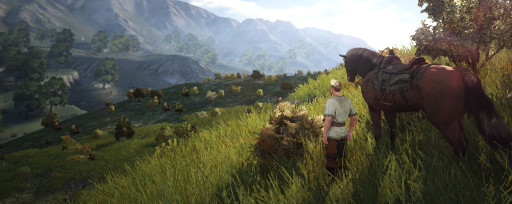 One of the design goals for the game is a balance between PvE and PvP – although the title leans towards PvP more. PvP cannot be turned off so be cautious of attacking players as you explore the open world. In both PvE and PvP, you can attack either on foot or while riding your horse.