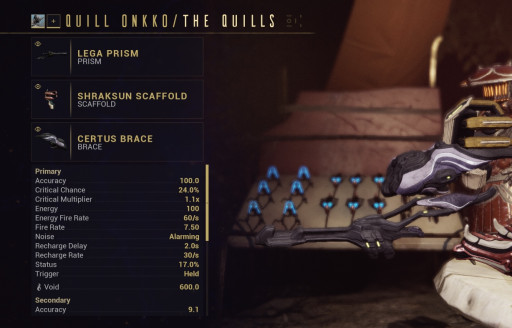 - The Lohrin Brace (12% crit and status) and Certus Brace (20% crit) share similar stats, though Certus is preferred when accessible, as the status effect from Void damage is a bullet attractor, which many players find useless. However, Lohrin requires Observer (Rank 2 in The Quills) whereas Certus requires Instrument (Rank 4 in Vox Solaris), thus making Lohrin far more accessible.