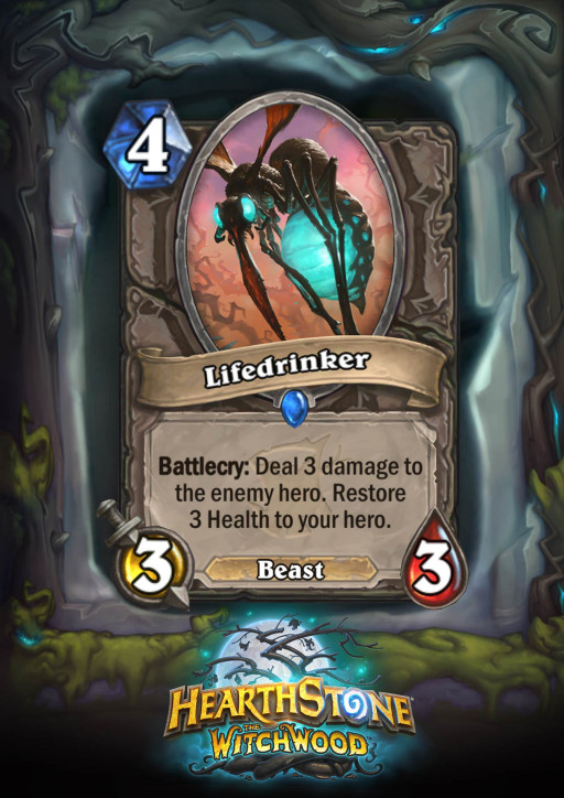 Okay so Lifedrinker isn’t the most game-changing card in most decks, but it makes for a very cost effective midrange minion. Many decks are focused on dealing direct damage to the enemy hero and this beast fits perfectly with that strategy. This card offers decent combo potential thanks to its beast subtype and blood sucking Battlecry, but it shines most when paired with Shudderwock.