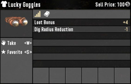 Tired of getting sand in your eyes. Grab yourself some Lucky Googles. Not only will you look cool, but you will get a loot bonus while wearing them