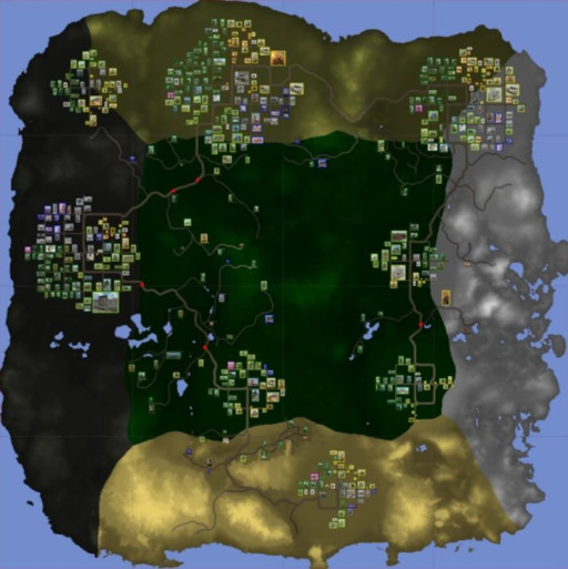 - Towns are all relatively close together and mostly in the forest biome. (The forest is your friend!).