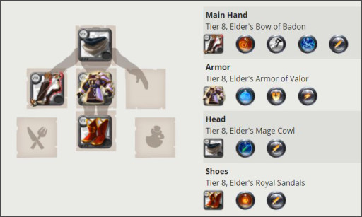 This Bow of Badon build relies on your ability to kite the enemy. Mage Cowl gives you an extra damage boost with its poison ability as does the Thetford Cape, while the Royal Sandals give you periods of super fast speed and bonus damage. This build requires some skill to master and it all hinges on your ability to kite well.