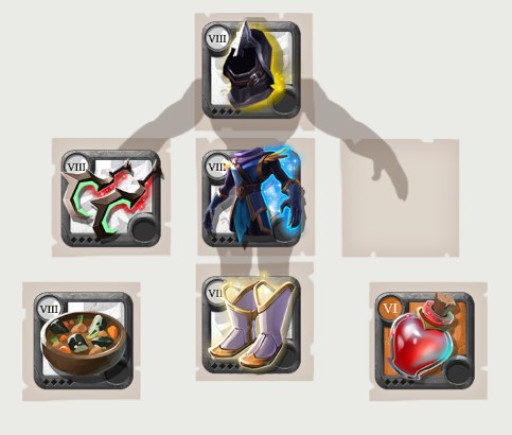 The Cleric Robe, Guardian Boots, Mistwalker hood and Gigantify Potions are your defensive items.