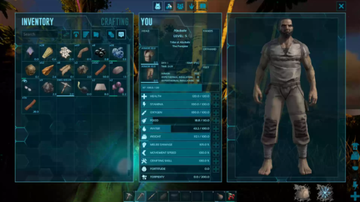 When you first begin Ark, you’ll have next to nothing (at least useful) on your person. While you can very well walk up to a tree and punch it, it’ll quickly drop your health down low and cause you to lose most of the other stats too. Let’s start by trying the following: