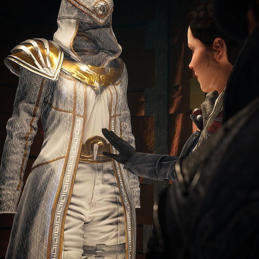 Worn by the Ancients. The Aegis was an ancient armor outfit which allegedly belonged to the Isu scientist -Minerva. Millennia later sometime before the Industrial Revolution in the 1860s, the Assassin Michel Reuge somehow found The Aegis near Bath- Somerset in England and later stored it in an underground vault in London. In 1868, Evie and Jacob Frye gained access to Reuge's vault and Evie claimed the Aegis to her own usage. The best outfit to equip on Evie is The Aegis outfit, it is a beautiful design and offers the most of an all rounding set of skill and defense, apart from the other outfits available, this outfit compliments Evie’s stealth ability the best by adding in an extra boost. When Evie wears the Aegis, the outfit flickers with visible pixel lines like a screen.