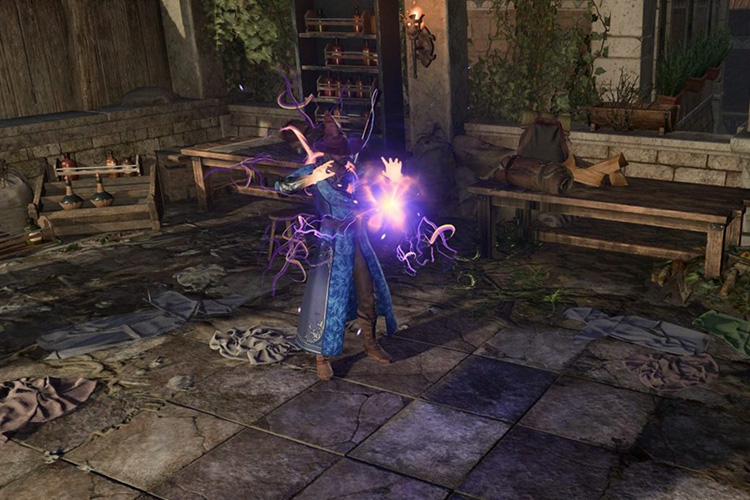 If that hat wasn't enough of an indicator, Gale's casting a spell to make sure everyone knows his magical talent.