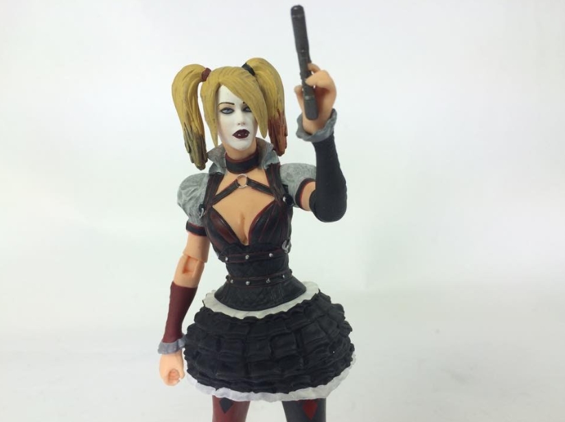 This Harley Quinn action figure has different interchangeable heads with various highly detailed expressions that range from her usual cheeky expression to an unmasked version. Other interesting pieces associating with Harley Quinn includes her hyenas, clown-based weaponry and even another completely Harley Quinn with a fish head costume.