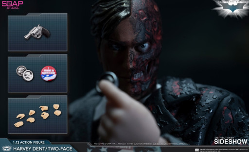 For a Batman villain who achieved notoriety for badly disfigured face, this Two-Face figurine has a rather simple and clean-cut design with two primary colours. Especially when you compare it to the other Two-Face from “The Dark Knight” film that is also included in this list. The sculpting used to create its disfigured face is really praiseworthy when it brought out the two sides of Harvey Dent’s personality: the noble determination and the ugly madness.