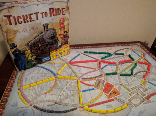 In the US version, North American cities are laid out on a board with pictures of different train routes connecting them.