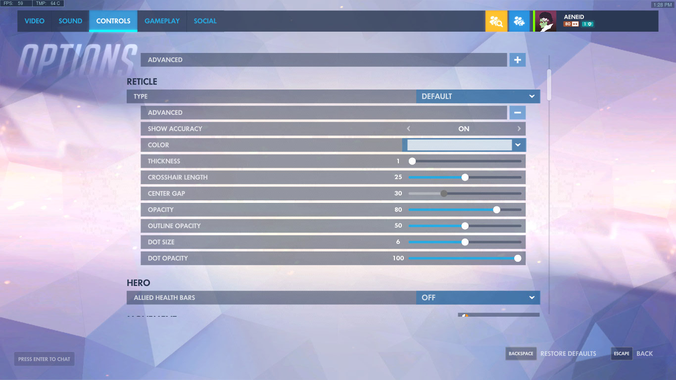 Choosing the right reticle for every hero might be a lot more important than you think. The reticle shows the middle of your screen and the exact location where you will land your shot. There are two things you should consider when setting the right reticle: