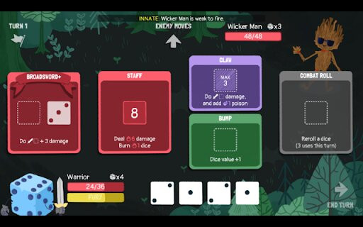 The newest game on this list, imagine the strategic, turn-based combat of Slay the Spire, replace the cards with dice, and slather a coat of Cuphead paint over the entire game. Dicey Dungeons is a fun lighthearted experience with a cutesy style and constant sense of humor that somehow matches the simple yet still strategic combat.