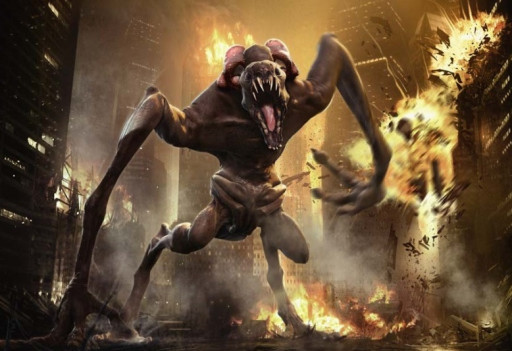 The detailed costuming of the imagined superbug fits the dirty Manhattan setting well. In the gloomy urban lighting, it can be impressively scary.