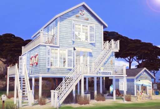 Look no further for a beach-side retreat. This home is perfect for your Sims who love summertime and wish it would stay sunny every day! Build sandcastles in the shade of this light and open home. This house is also perfect for lovers of fishing. This home contains 2 bedrooms and 2 bathrooms. It does contain some CC, so make sure you download that as well, listed at the bottom of the page.