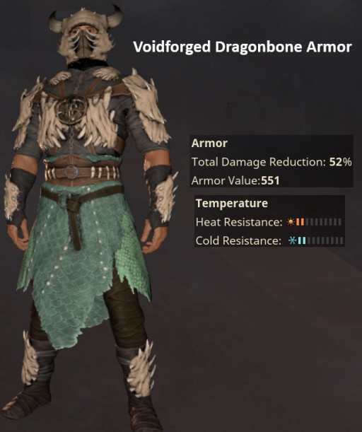 If you want the health and stamina of a dragon, look no further than the Void Forged Dragonbone Armor (Shown Above)!