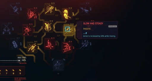 This is a park that’s found under the blades skill tree. This perk improves your armor while moving by 15% at level 1 and at level 2 it improves it by 30%. This is a pretty good perk to have early on if you’re going for a melee build. As you won’t have enough HP to sustain yourself during a fight in the early game this perk will make you survive just a tad bit longer.