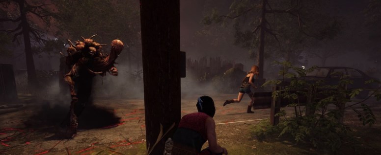 Haddie hides right next to a Dredge giving chase to another Survivor.