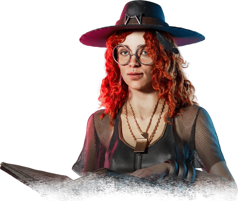 Everyone’s beloved witch in Dead By Daylight – or very hated if you prefer to play killer. Released in October 2021 in a half-DLC chapter, Mikaela Reid is a barista who dabbled in witchcraft and white magic, later to be haunted and taken by the entity during a stage show at her job at “The Moonshine” café. Now stuck in its realm after her show, she uses her abilities that allow her to support her fellow survivors with evading and healing. Mikaela was the survivor to introduce the “Boon mechanic” which is the opposite of a killer’s “Hex” mechanic: Able to set it up anytime at an unbroken totem through blessing it. Carrying her own weight in the trials, she brings to the table the perks of Clairvoyance, Boon: Circle of Healing, and Boon: Shadow Step. These perks allow her to cleanse a totem to gain the ability to see objects quite far for a short time, and her last two perks grant her the ability to set up a boon that speeds healing progress and enable self-care, and the last perk hiding a survivor’s trail when they run in addition to masking their aura.