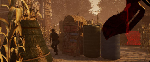 - Blood splatter behind a laying down Survivor – The Survivor is slugged on the ground.