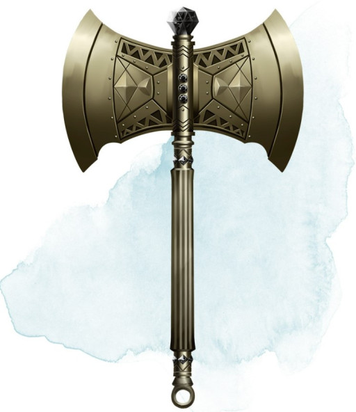 A gold axe absolutely covered in Jewels. Exactly what you would expect from an axe made by people who spend all their time mining.