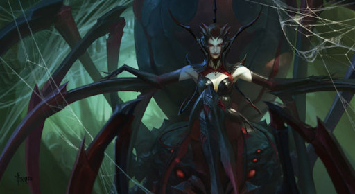 The Demon Queen of Spiders sits atop her throne. I wonder how often she has to rub spiderwebs out of her face.