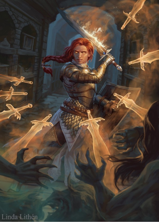 Within the confusion of combat, paladins act as beacons for their allies. While fierce enemies of evil, they may also inspire virtuous individuals to join them in their crusades. They are also ideally suited to protecting others and giving the defeated the will to battle again thanks to their magic and martial prowess.