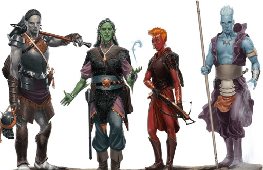 Descendants of giants, goliaths are 7–8 feet tall, hardy, and physically imposing. They live in mountainous regions as members of nomadic tribes and value strength, practicality, competition, and fairness above all else.
