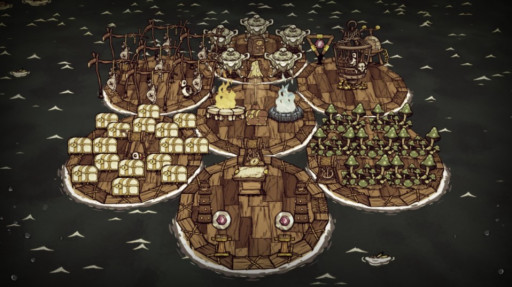 This base is more of an “I’ve been playing Don’t Starve Together for half of my life now, I am bored” base. I thought I would include it in the list because I have seen a lot of players making this type of base. You build boats next to each other and put each category of things on a separate one. So, for example, you have your Chests on one Boat, your Drying Racks on the other, your Kitchen on the third, and so on.