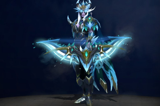 The Gaze of Zebulon sports a very eagle-like design that shows up many sharp edges that really complements Drow Ranger’s whole personality. Being an ice archer, The Gaze of Zebulon shows this off even more with Drow Ranger’s signature blue color scheme. Ths skin gives off ambient colors of gray, gold and cyan, which goes so well with the entire skin. But her helmet just goes incredibly insane. With her glowing eyes, you might just want to not get hit by her Frost Arrows.
