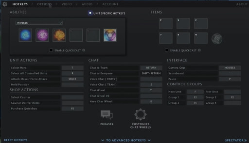 These settings are completely different from the previous two settings on the list, as these cater towards the veterans and extremely high skilled players, we’re talking Divine medal and above. These settings have everything from inverted camera grip to Alt + Ability Keybind, which allows you to assign a normal version of the keybind to another spell or item. These settings are often hard to imitate if you’re a rookie, as they take years to master, but are proved to be more efficient than your normal keybinds and settings!