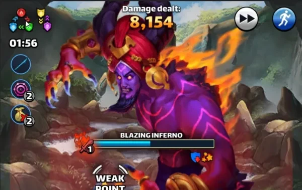 His Blazing Beak deals 225% damage to the target and nearby enemies, but more noteworthy is his ability to also inflict defense down against Fire to the enemy for 4 turns, resulting in the Titan having -54% defense against the element. From the Paladin class, his strong defensive stats will make him a great Tank when facing them too, making him a must in any lineup facing a Nature Titan!