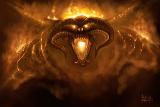 Balrogs are some of the coolest looking fire demons. Powerful, agile, and ferocious, they have somewhat humanoid shapes. They have large horns, fiery “manes,” flaming whips, and cool looking molten weapons. Powerful enough to contend with Gandalf in a one-on-one battle, and a single Balrog was able to drive the Dwarves from their home of Khazad-dûm.