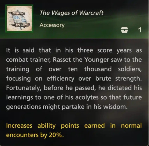 6. Equip “The Wages of Warcraft” Accessory (Mid-Game)