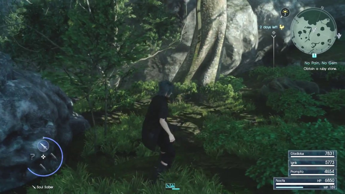 Noct is on his way to find Gladio’s Loudspeaker in Myrlwood Forest. That’s about it. What did you expect?
