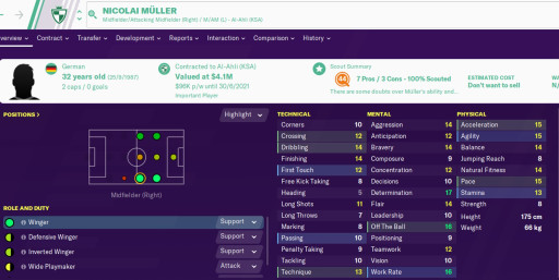 Giuseppe Rossi is a 32-year-old striker. He spent most of his career in Villareal and Fiorentina and he is now a free agent. With a current ability of 114, he makes the 15th position of the best free agents in FM20.