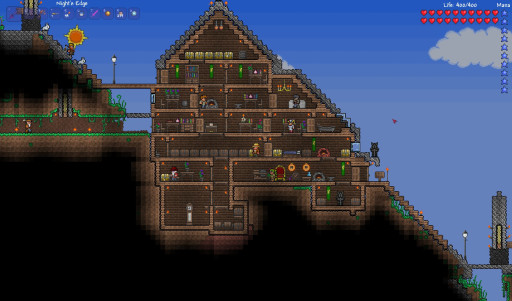 Manipulate your environment in any way you can imagine! You can build your house in the sky, into a cliff face, underground, anywhere!