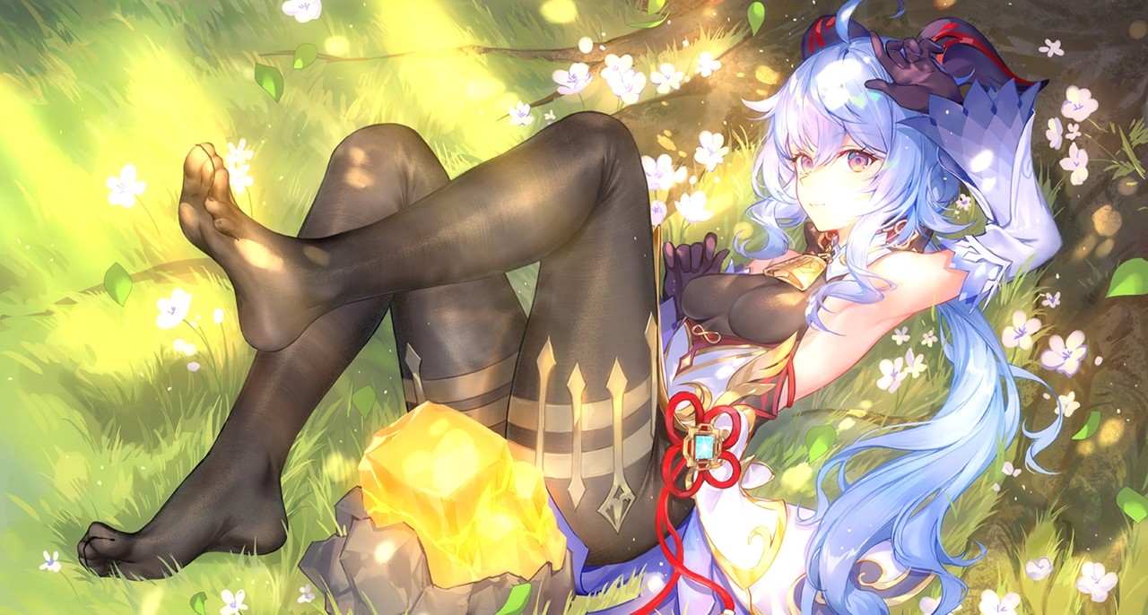 Here we can see Ganyu relaxing in Liyue’s meadow and there’s some typical Liyue’s rocks too.