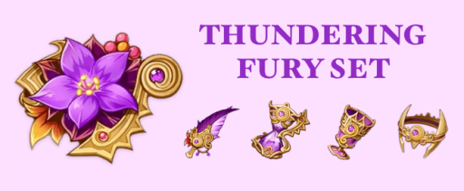 Thundering Fury is an Artifact Set which can be obtained from Midsummer Courtyard. Its 4-Piece Bonus increases the damage caused by Overloaded, Electro-Charged, and Superconduct by 40%.