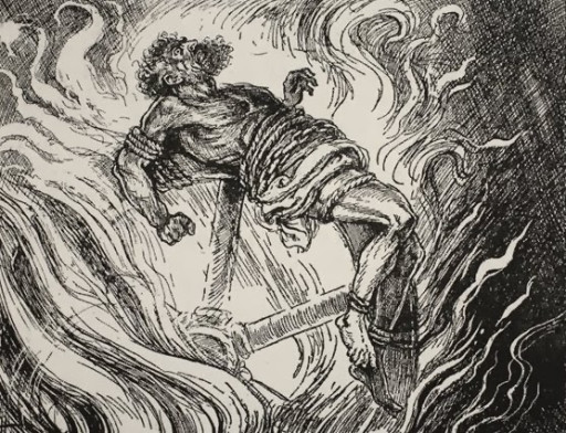 For his crimes of kin-killing and attempting to assault Hera, Ixion was sentenced to punishment in Tartarus. Ixion was bound to a winged, burning wheel, which was always spinning. He would spend eternity attached to the fiery wheel as it spun throughout Tartarus. Ixion seems to be the first evil human in Greek mythology, and he was immortalized as such with his punishment.