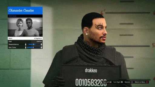 This GTA Online character focuses mainly on the gang side of things in GTA Online. This Gang variation is for the Black community and can be recreated quite easily by using the default character design for both black parents and by choosing the low-cut option under haircuts, Tattoos with white contacts can be added to complete the look.