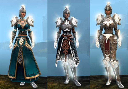 Every time you get an achievement in GW2 you get AP, or ArenaNet Points. As your AP number rises you will meet certain milestones, and at these points, you get achievement chests of various sizes. Eventually, a chest of grand size will appear and you will get to choose between Radiant and Hellfire armor skins – both are fairly visually appealing.