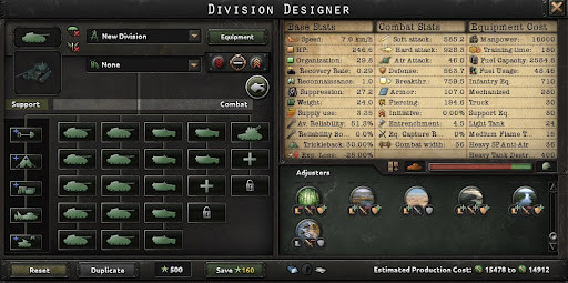 This division is the only mechanized template on this list, and it is decent. With a great soft attack, speed, and the highest suppression in the game, this division is good for support attack.