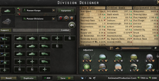 However, making a heavy and medium tank Korps with mechanized can be a little resource intensive for less fortunate nations, so why not go with a simpler, achievable, yet effective template like this Panzer Korps build? Using a combination of medium tanks, motorized, and possibly some german engineering, you have a tank that offers great breakthrough and piercing and is fast enough to outrun most other tank korps.