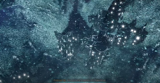 You and Professor Fig are arriving late to Hogwarts. The full moon lighting creates an impressive first view of Hogwarts and shows you how detailed this game is really going to be. It’s your first view of how big the castle is and makes you excited to get started on your adventure.