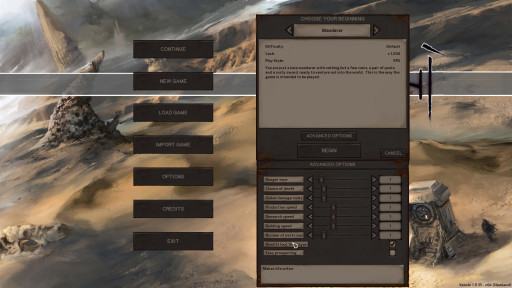 As you can see, when you first select “New Game” you are greeted with the “Wanderer” start. This is the way that Kenshi is intended to be played. There are others but if this is your first time, pick this one.