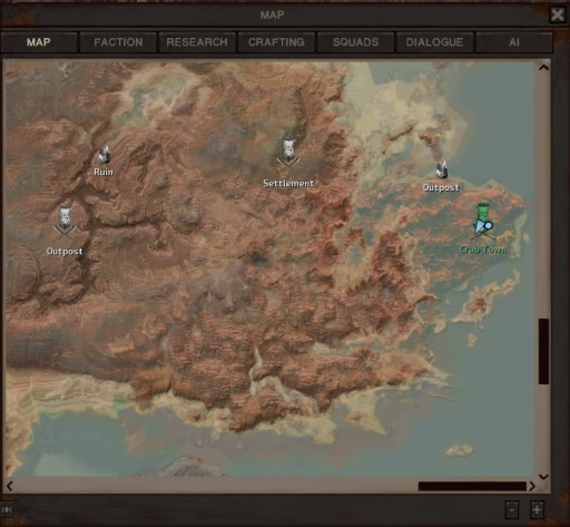 Crab town on the map. It’s turned green to signify that they are my allies.