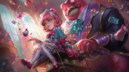 To be honest with you, I hate this design. She looks horrible, her white hair looks like a wig from the XVIII century. I love the idea of Tibbers as a carebear but that's it, there's nothing else that can be interesting about this skin. Tibbers's design is quite flat and doesn't reflect the reality of it being a demon, it looks like a regular stuffed bear. No new sound or visual effects are added, everything stays the same as the base skin. The only good thing about it is the splash art. She looks so cute with blonde curls and pretty details. Of course, her in-game model doesn't look like the splash art.