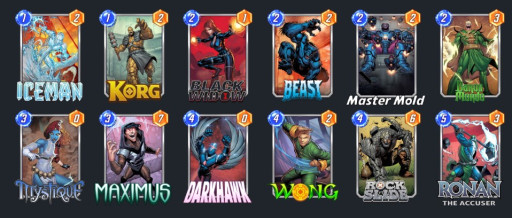 Korg and Rockslide will fill your opponent’s deck with rocks. You can use Wong to give your opponent even more rocks or you can use Beast to put those cards back in your hand so that you can fill up your opponent’s deck even more. Darkhawk and Ronan The Accuser will be your big cards that benefit from filling your opponent’s hand and deck with useless stuff. This deck is really strong because you’re constantly going to be making life difficult for your opponent, while still being able to play strong cards near the end of the game.