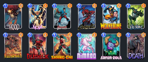 - You have a stable early game that can put a lot of power on board rather quickly since you’ve got Hood, Nova, Bucky Barnes and Wolverine
