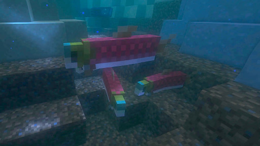 The salmon in the Bedrock version has accidentally become the meme Big Salmon, due to the size variations of the fish that isn’t seen in Java. Though most players are aware of this, it’s not only the salmon that’s bigger in Bedrock. Mobs of the sea like dolphins and squid actually have baby versions found in Bedrock but with lower spawn rates, 10% for baby dolphins and 5% for baby squid.