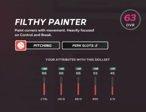 Filthy painter is available to players who choose “control” as their focus point when first creating their player. Filthy painter works by increasing control and movement. The difference between filthy painter and painted filth is that filthy painter gives you even more command over your pitching repertoire.